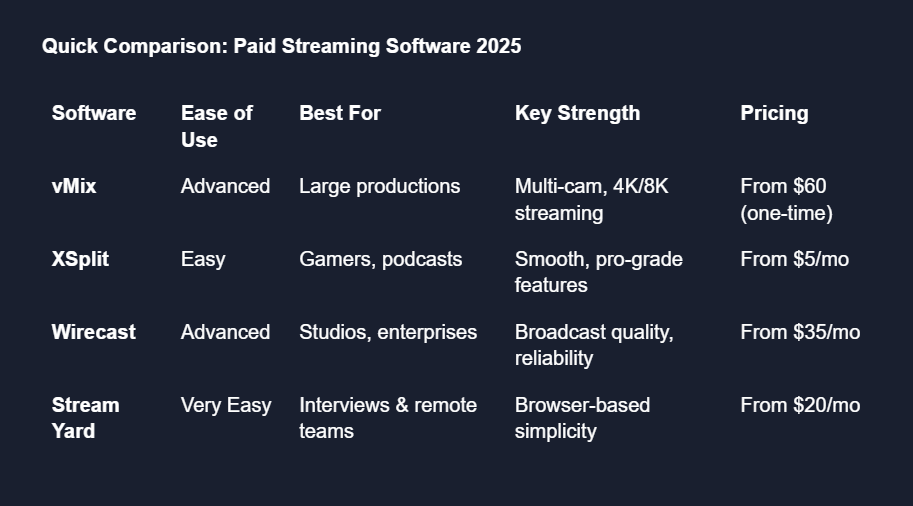 Discover the best free and paid streaming software & tools in 2025. Perfect for beginner streamers. Compare OBS, Streamlabs, vMix & more to go live like a pro.